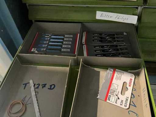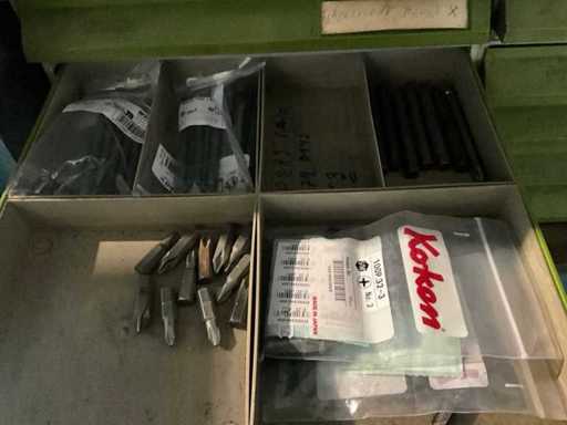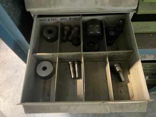 Mit verschiedenen Sortierbehältern und Werkzeugen.