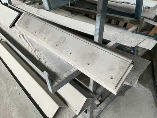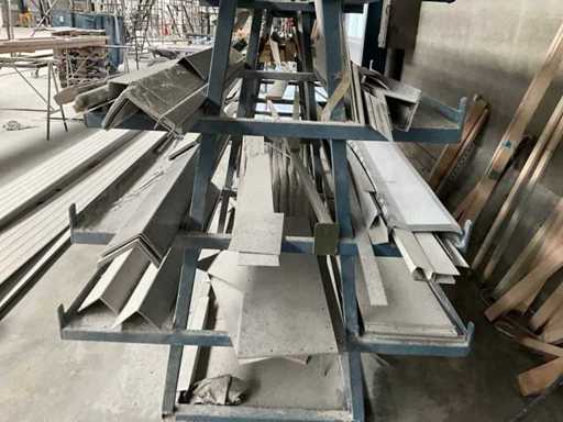 Komplett mit Inhalten, darunter Metallprofile und Holz.