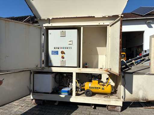 • Mobile Einheit mit Mischwerk, Vorratsbehältern, Förderband und Steuerung.