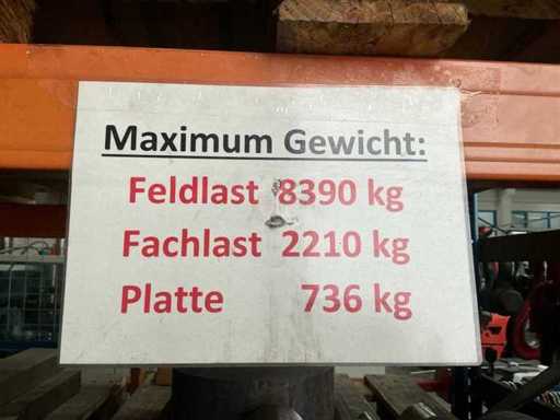Feldlast 8390 kg, Fachlast 2210 kg, ohne Inhalt, Traversenlänge 2750 mm, Rückseitig mit Durchschubschutz und Gitter