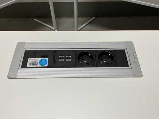 Tischfläche: 1600 x 800 mm, auf Rollen, mit Steckerleiste