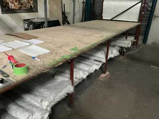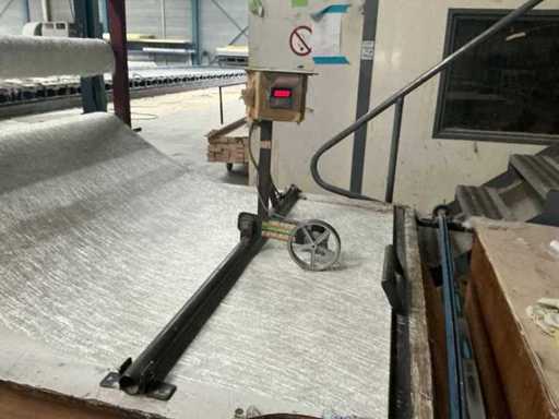 Verwendet zum Schneiden von Material auf einer Rolle / ausgestattet mit 2x-Rollenspender und Arbeitstisch