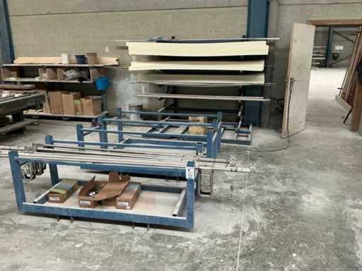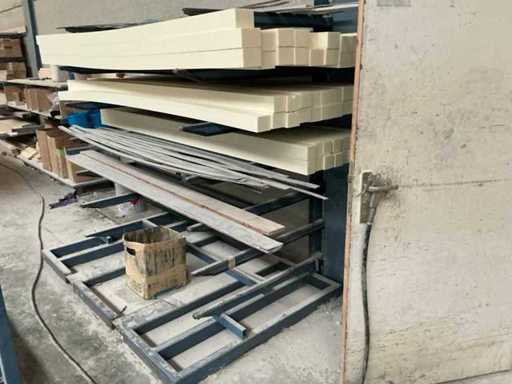 Beinhaltet ein kleines Auslegergestell mit Inhalt. Ausgestattet mit Gabelstaplerröhren.