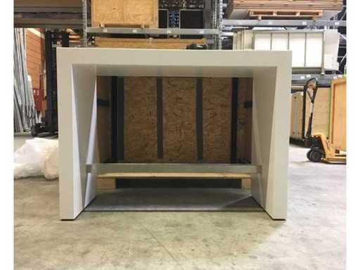 weißer Brückentisch mit Plexiglas-