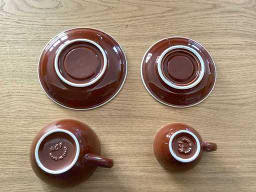 Tasse und Unterteller 5x, Espressotasse und Unterteller 4x, Konvolut, braun weiß