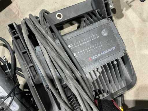 Dazu gehören 1x Scangrip auf dem Stativ, 1x locker Scangrip und 2x Purpl.