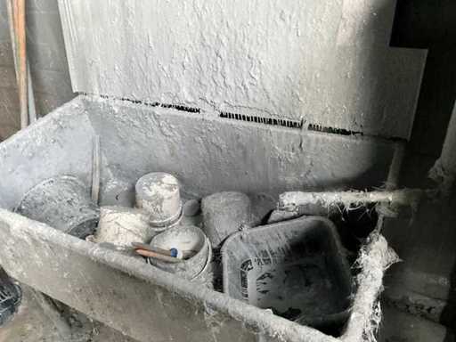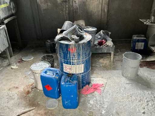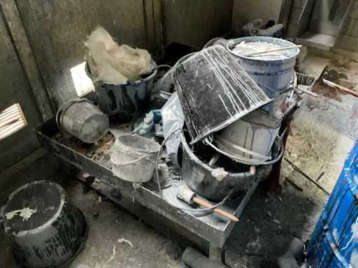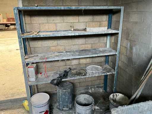 Inhalt Raum K, bestehend aus verschiedenen Farbmischutensilien, 1x Metallregal