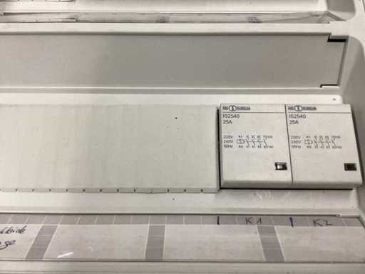 3 Gruppen je mit FI abgesichert je 5 bzw. 6 Stromkreise und 2x IS2540 Schütz