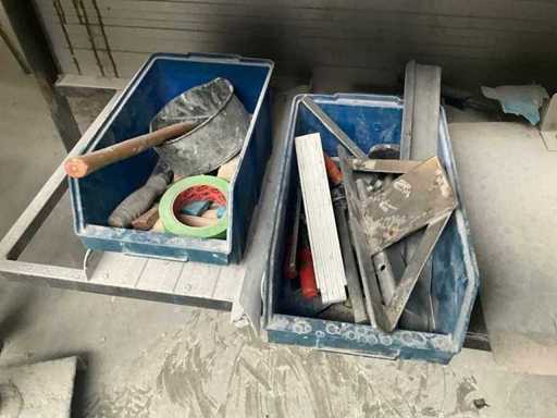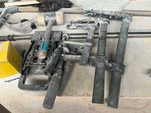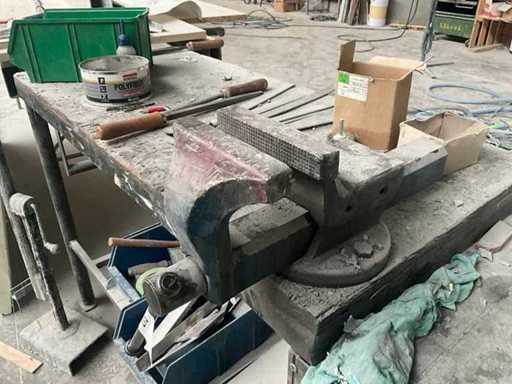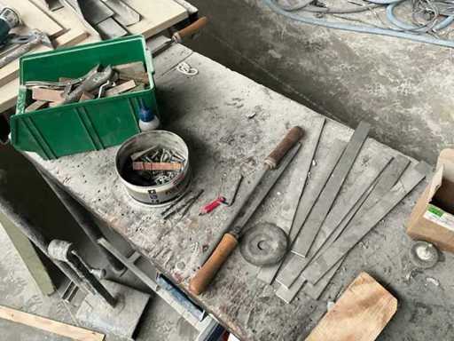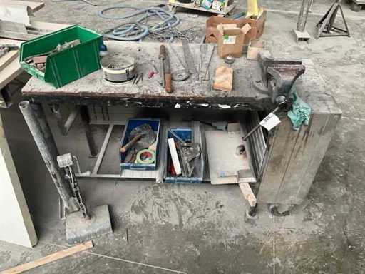 Werkbank ausgestattet mit Schraubstock, komplett mit Inhalt.