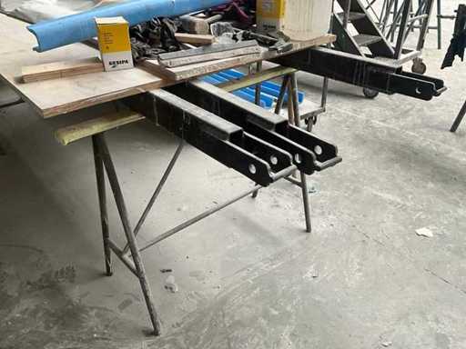 2 Metallbrüste mit Holzdecke und 3 Metallbalken von etwa 350 cm Länge