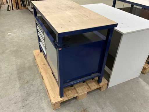 Werkbank Werkstattmöbel, 3 Schubladen, 1 Türe, massive Arbeitsplatte, abschließbar