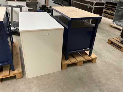 Förch Werkbank – Arbeitsplatte, Massivholz, Fichte/Pappel – eine Türe – drei Schubladen – Ablagefach – alles abschließbar – neuwertig mit Lagerspuren – Schlüssel vorhanden - zusätzlich mit weißer Abdeckung siehe Bild – Werkbank funktioniert ohne Probleme auch ohne Abdeckung