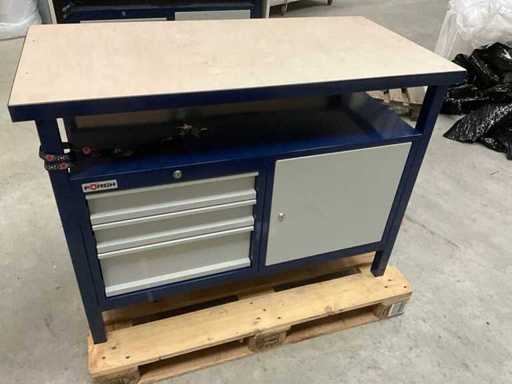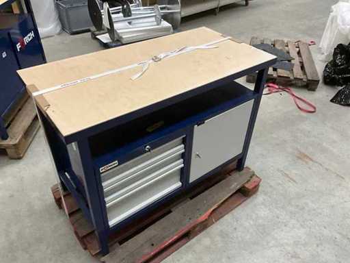 Werkbank Werkstattmöbel, 3 Schubladen, 1 Türe, massive Arbeitsplatte, abschließbar