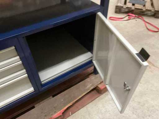Förch Werkbank – Arbeitsplatte, Massivholz, Fichte/Pappel – eine Türe – drei Schubladen – Ablagefach – alles abschließbar – neuwertig mit Lagerspuren – Schlüssel vorhanden - zusätzlich mit weißer Abdeckung siehe Bild – Werkbank funktioniert ohne Probleme auch ohne Abdeckung - ohne Palette