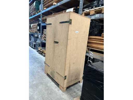 Mobil mit Hubwagen oder Transportstapler unterfahrbar. Massives Schloss, einbruchsicher, wurde zur Messe Montage benutzt. Fächer fest vereitelt.