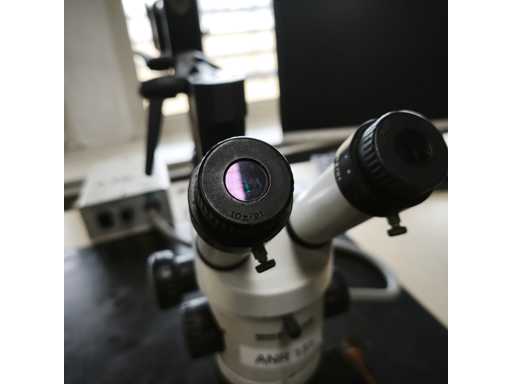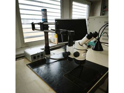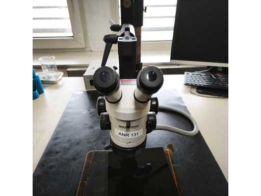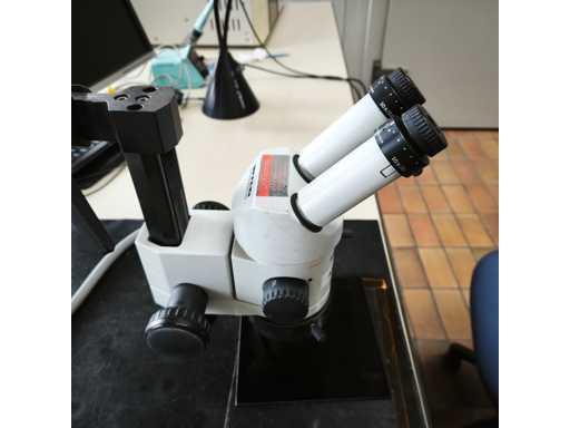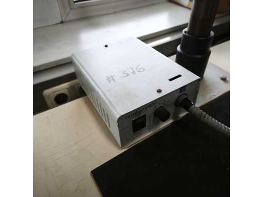 1x (ohne Namensschild) Stereomikroskop mit verstellbarem Ständer und Volpi Intralux 4000 Kaltlichtquelle, Okular 10x/21, 16x Zoom