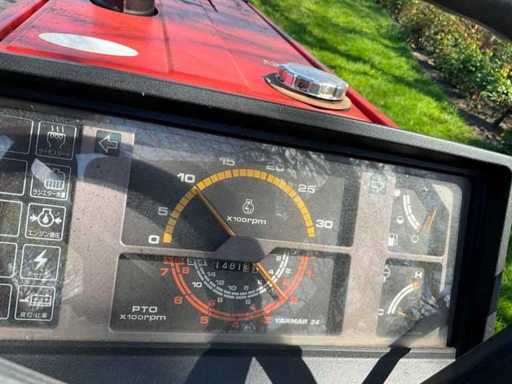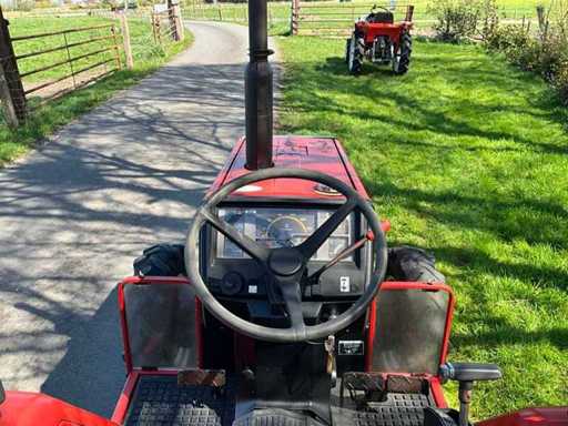 Hat Allradantrieb, 24 PS, 3-Gang-PTO, 9 Vorwärts- und 3 Rückwärtsgänge und verfügt über Schaltschalter.